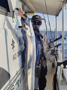 釣果情報 タチウオ釣行 11月17日(月) 今日は豊後予定でしたが途中から風が吹くとのことで途中下車。 うーん。小さい… 返しにパタって釣れるも潮が行き出したらパッと止まる。 小さすぎて釣りにも掛からない状態でした。 ほんと渋かった。 お客様も苦労されたと思います。 申し訳ありませんでした。 次回聖地に行ければいいですね!