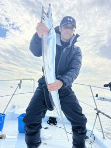 釣果情報 12月20日豊後タチウオ・シロアマ 12月20日豊後タチウオ・シロアマ 朝から試練の1日でした。 数が上がらず皆さん苦労したのではないでしょうか。 その中でも皆さんブッチャーを釣ってくれて船長の沖田もひと安心。 返し後、少しして今から釣れるかなと思いも後ろ髪を引かれながら次の場所へ。 イトヨリやバカでかいエソもいましたが、ちゃんとシロアマちゃんの顔も見れましたよ。 またのチャレンジお待ちしておまります。 ご乗船ありがとうございました。